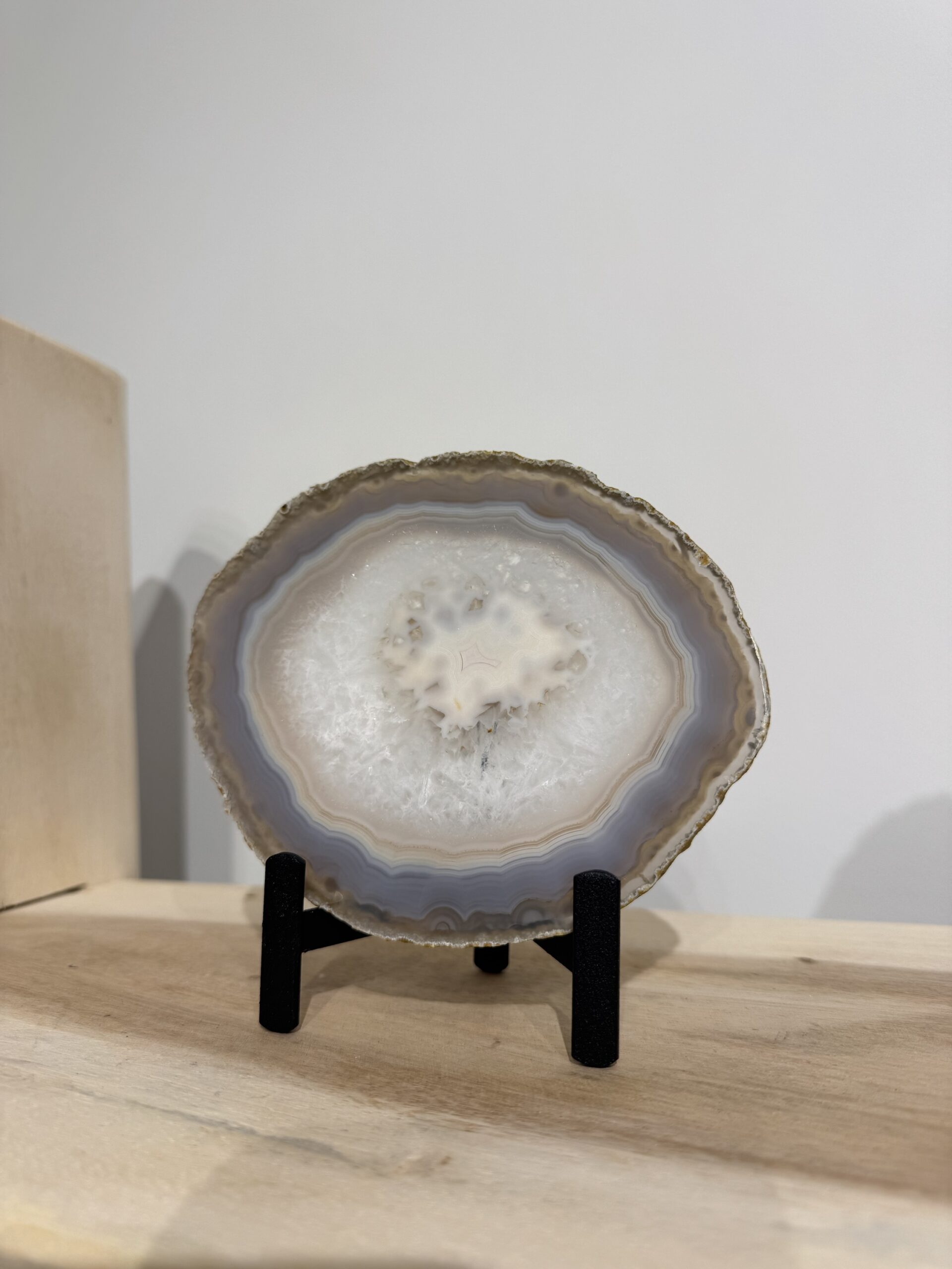 Agaat is een aardende, stabiliserende en beschermende steen. De steen bevordert innerlijke rust en een kalme en nuchtere houding. Hij stimuleert spirituele en geestelijke groei door aan te zetten tot zelfreflectie en spoort aan even afstand te nemen en alles wat objectiever te bekijken. Agaat biedt bescherming, zekerheid en veiligheid doordat het je helpt om inwendige spanningen op te lossen. Verder geeft het je een betere weerstand tegen invloeden van buitenaf. Daarnaast stimuleert het creativiteit en nodigt je uit om je eigen vrijheid te ontdekken en in te nemen. De steen versterkt je gevoel van eigenwaarde en waardering voor jezelf. Het bevordert logisch denken en concentratie en helpt daarom om praktische oplossingen te vinden voor problemen. Agaat beschermt je aura, geeft een veilig gevoel en brengt balans in lichaam, ziel en geest. Fysiek is agaat een goede steen om tijdens de zwangerschap te dragen (voor zowel moeder als kind) omdat het beschermend werkt, groei stimuleert en een gunstige werking op de baarmoeder heeft. Het geeft bescherming en stimuleert groei bij kinderen. De steen zorgt voor evenwicht en werkt beschermend tegen invloeden van buitenaf. Het heeft een positieve invloed op maag, blaas (bij bijvoorbeeld een blaasontsteking), ogen, bloedvaten en stimuleert de stofwisseling.