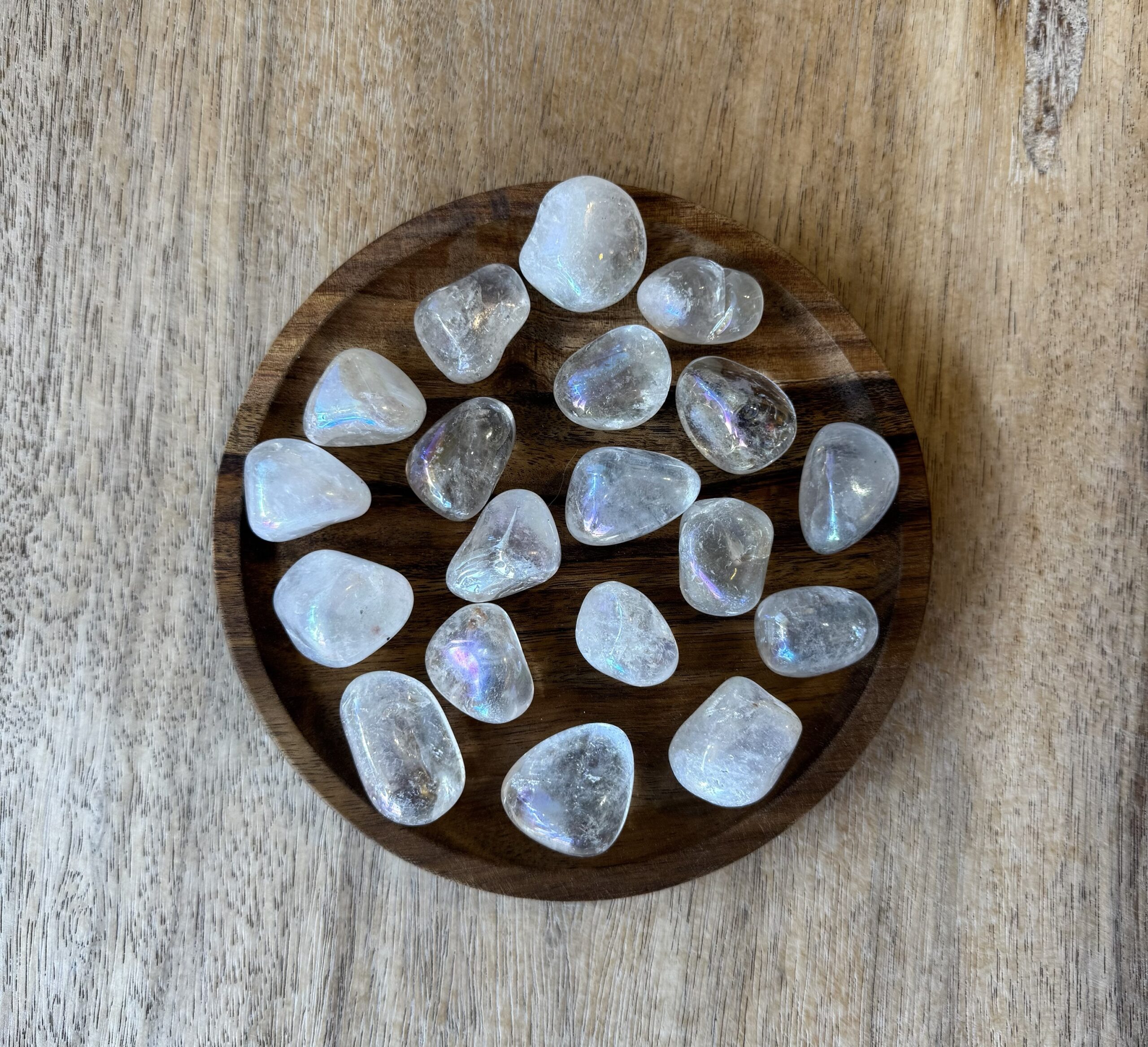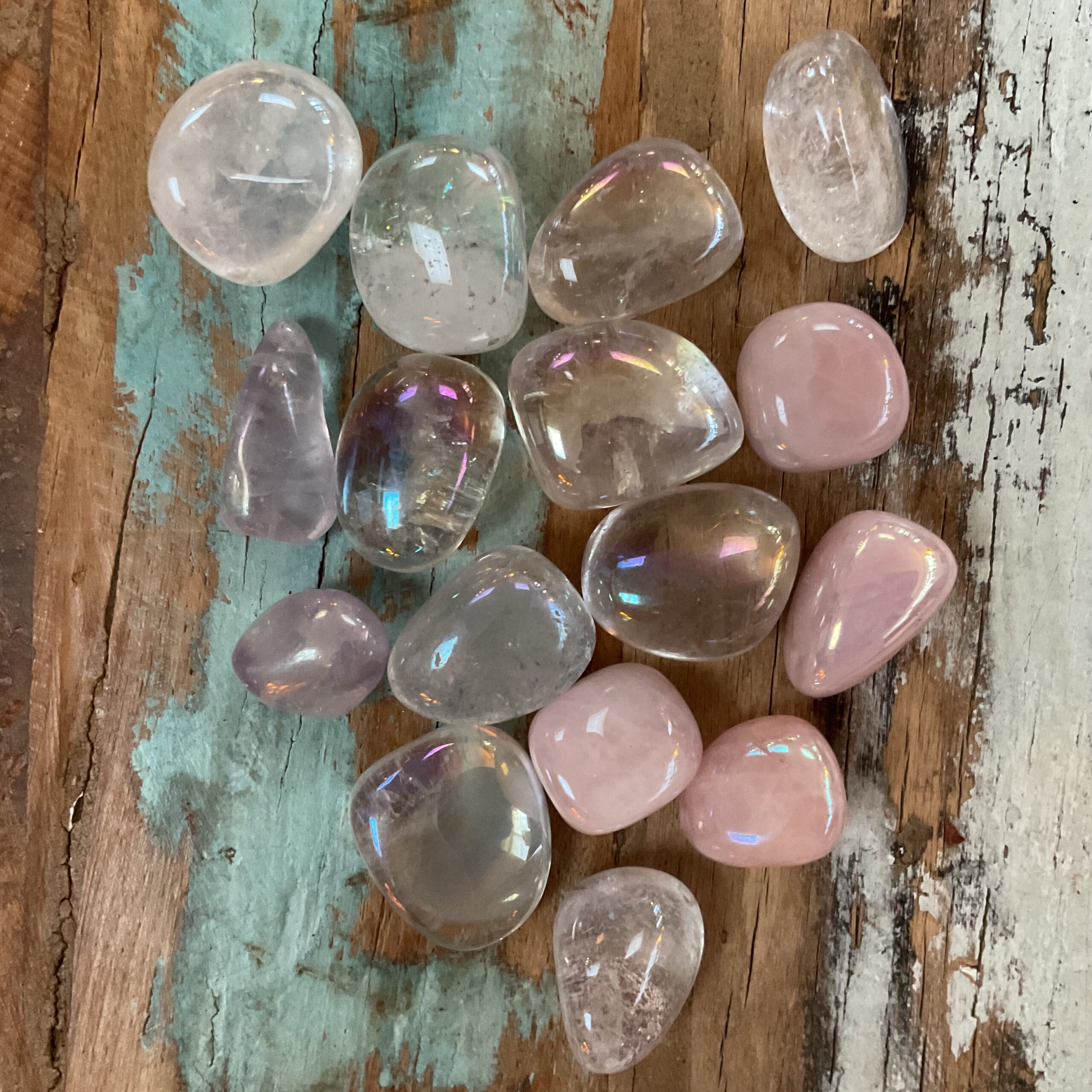 Angel Aura is bergkristal en is behandeld met platina en zilver, waardoor het oppervlak een olieachtige glans met een regenboog aan kleuren heeft. Deze laag is permanent en kan er niet afgewassen worden. Angel Aura verenigt de energie van bergkristal, platina en zilver in zich. Het resultaat is een heel zachte, liefdevolle en lichte energie welke een sereen, vredig en tevreden gevoel geeft. De steen heeft een sterke connectie met het Engelenrijk en helpt je haar boodschappen te ontvangen. Het bevordert spirituele inzichten en kennis en helpt je om je spirituele levensdoel te vinden. Angel Aura is een krachtige reiniger van lichaam, geest en ziel en helpt je losmaken van negatieve entiteiten en verbindingen. De steen geeft zo’n fijn en rustig gevoel en helpt bij stress spanning en zorgen te verminderen. Angel Aura is een meestergenezer en helpt bij angst, paniekaanvallen, fobieën en voor gebruik bij Reiki-genezing, reflexologie en shitasu.