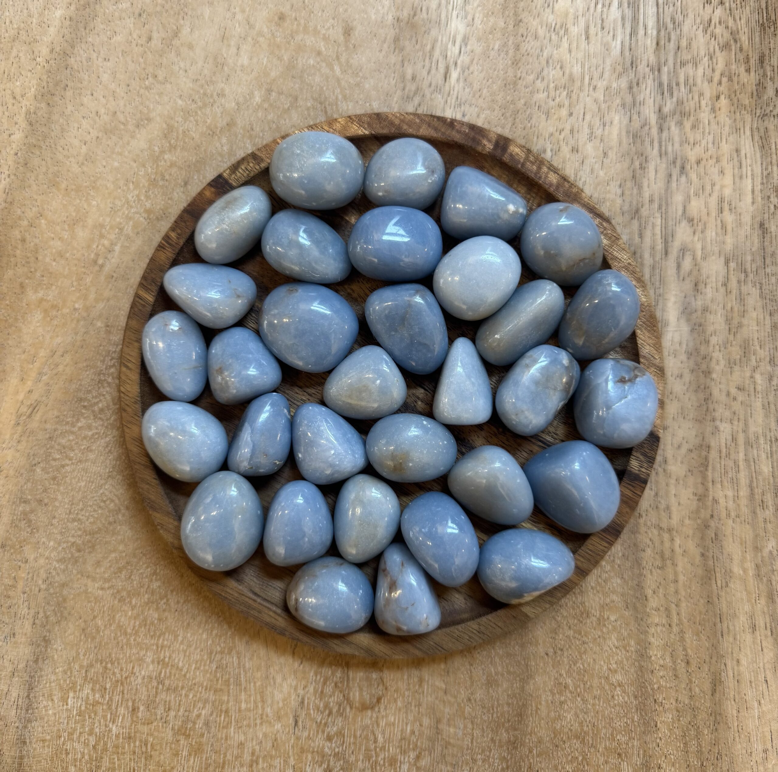 Angeliet is een beschermende en kalmerende steen die je helpt om spiritueel contact te maken met de kosmos en je ondersteunt in het accepteren en uiten van je gevoelens en waarheden vooral als je dat niet zo goed durft. Deze steen heft energetische blokkades op en helpt je in het uiten van je gevoelens. Het is een bewustzijnssteen en helpt je te accepteren zoals de dingen zijn en kan je ook helpen door een periode van zware emoties. Angeliet is een echte engelensteen en maakt bewust contact met de engelen, maar ook dat je goed geaard blijft. Angeliet helpt je om je keelchakra te openen zodat je de boodschappen van je begeleiders ook beter kunt doorgeven. Met deze steen help je om eerlijk te zijn naar jezelf en je gevoelens toe om zaken die niet veranderd kunnen worden te accepteren. Het is een steen die je doet stoppen met eindeloos gepieker. De kalmerende werking van Angeliet geeft een gevoel van innerlijke vrede en een betere verbondenheid met jezelf. Het is een steen die je door zware psychische belasting en heftige emoties heen kan loodsen.