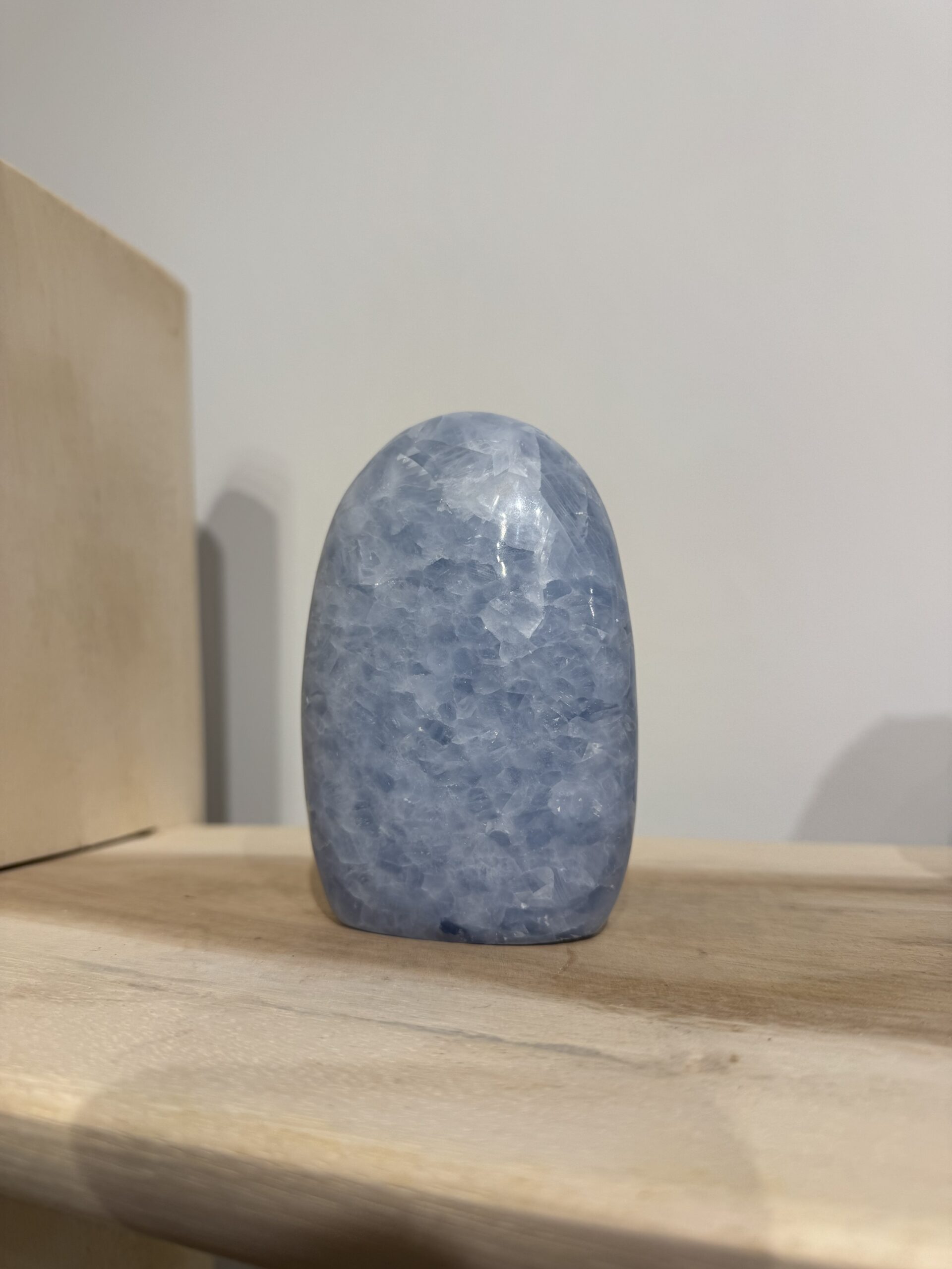 Blauwe Calciet werkt kalmerend en ontspannend. Het beschermt tegen negatieve energie en bevordert de communicatie. Blauwe Calciet laat spreken vanuit het hart en gevoel. De steen brengt helderheid en zorgt dat iemand weer liefdevol voor zichzelf kan gaan staan. Bij dit proces brengt de steen ook helderheid in gevoelens. Waar komen ze vandaan, waarom zijn ze er en nog belangrijker hoe ga je ermee om of kom je er weer van af. De steen helpt je met het uiten en verwerken van je emoties en gevoelens. HIj verzacht het de impact van geestelijke prikkels, zodat gevoelige mensen zich kunnen ontspannen en bij zichzelf kunnen komen. De steen helpt bij de band met je innerlijk kind en brengt deze rust. Daarnaast stimuleert het je keelchakra waardoor de inzichten die je op doet in jezelf makkelijker kunnen worden omgezet in woorden, muziek of kunst. Hierbij reinigt hij je keelchakra zodat je je beter kunt en durft uit te spreken. Fysiek werkt de steen koortsverlagend, bloeddrukverlagend en pijnstillend en heeft een positieve werking op de keel, longen, schildklier, verkoudheid en griep.