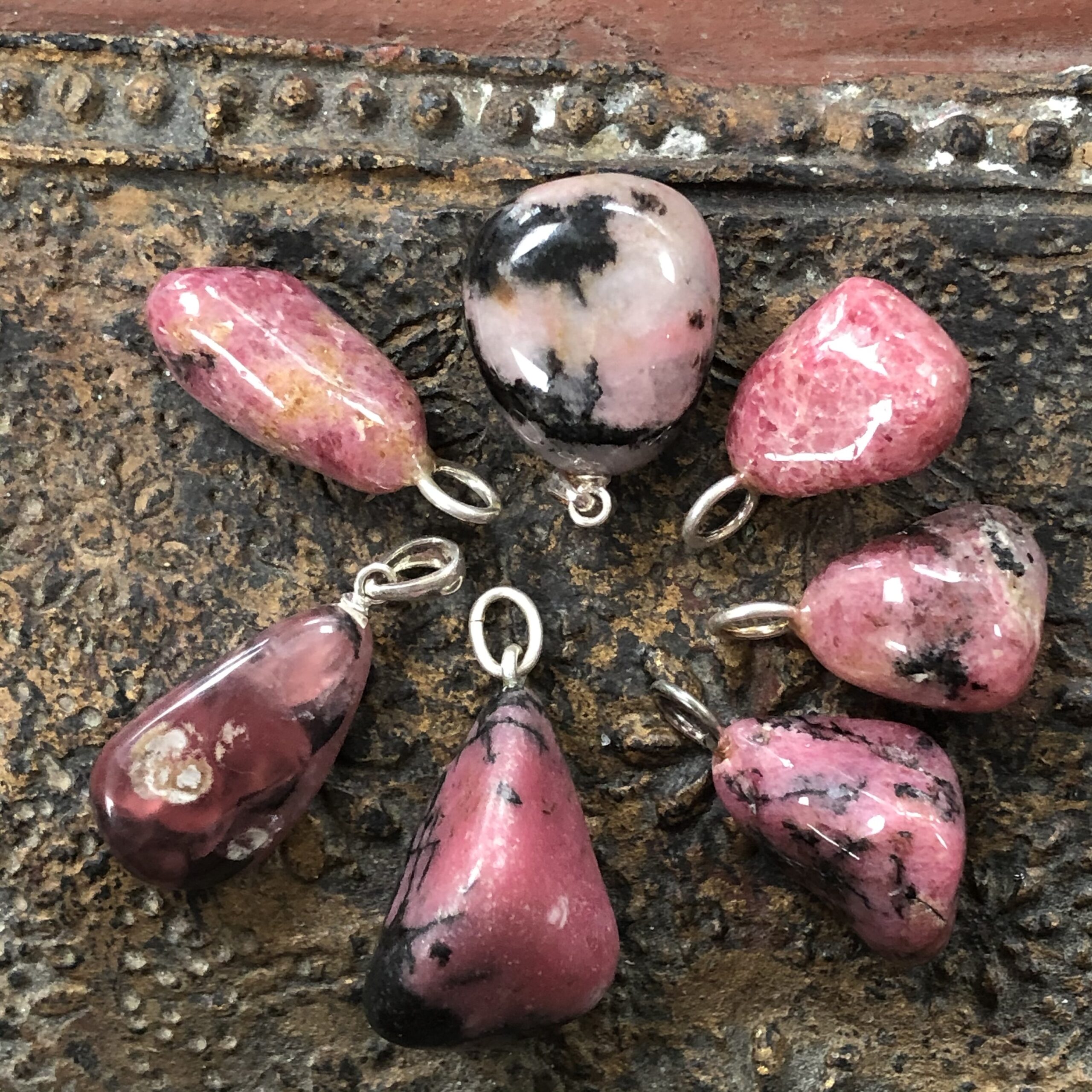 Mooie hanger van Rhodoniet.