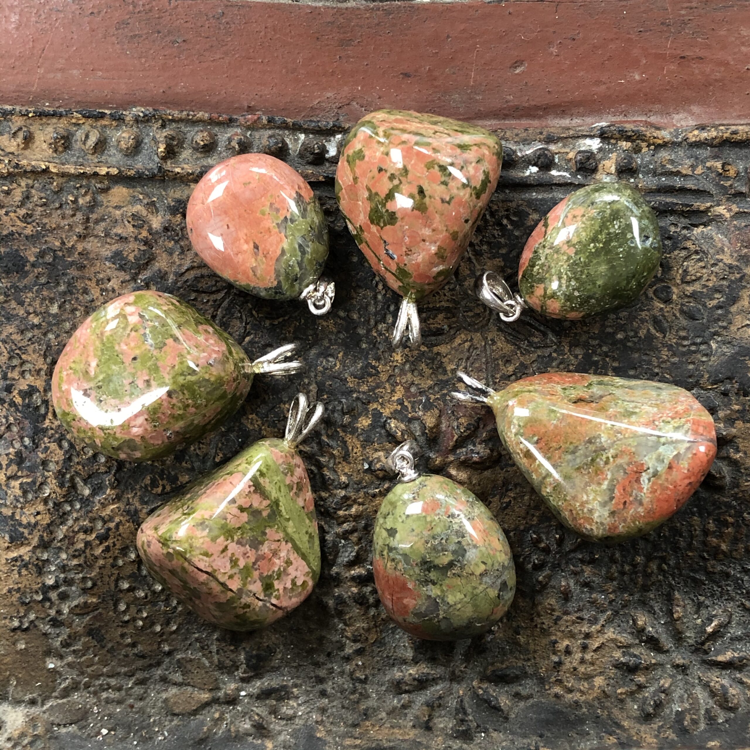 Unakiet is een combinatie van Epidoot en Rode Jaspis. Unakiet is een aardende steen die de geest sterkt en de oorzaak van problemen inzichtelijk maakt, waardoor je gedrag- en denkpatronen kunt doorbreken. Helpt loslaten wat je nog niet durft los te laten. Het is een steen die het hart met de geest verbindt. Epidoot regenereert en versterkt datgene wat er al ‘in zit’. Unakiet beschermt tegen negatieve energie en is de uitgelezen slaapsteen bij slapeloosheid. Uitstekende steen bij uitputting en herstel na ziekte. Maakt optimistisch en positief en geeft een goed humeur. Laat je weer genieten van het leven. Het groen en rood verbinden het hartchakra met het basischakra en harmoniseren de hogere chakra’s. Unakiet brengt de emoties in balans met de universele liefde ofwel liefde op het spirituele niveau. Het grondt en maakt stevig zodat de emoties niet de overhand krijgen zonder dat het zakelijk, causaal of alleen maar cognitief wordt.  Unakiet is een goede steen om het doorbreken van blokkades en patronen uit vorige levens te ondersteunen. Hierdoor wordt persoonlijke groei bevordert.