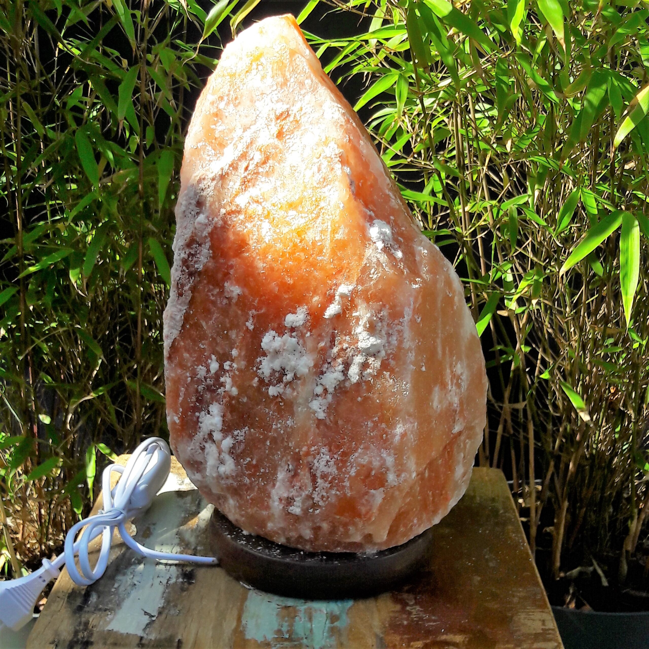 De kleur van de zoutlamp kan lichter of donkerder zijn dan op de afgebeelde foto. Het zoutkristal is een natuurlijk product.