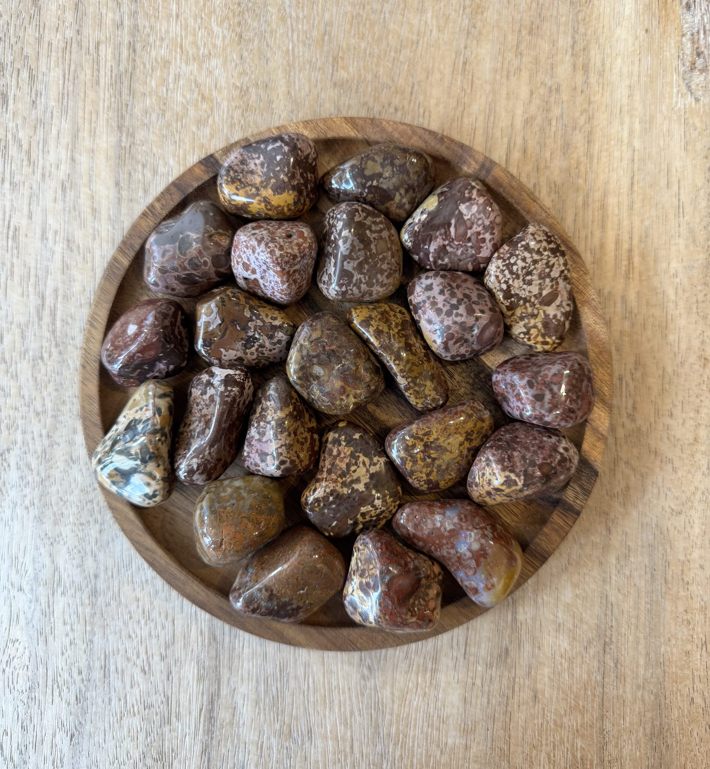 Luipaard Jaspis is een aardende en beschermende steen en zet je met twee voeten op de grond. Deze steen gaat gepaard met vitaliteit en kracht en brengt stabiliteit aan de persoon die mogelijk chaotische energieën ervaren. Deze steen helpt je je doelen waarmaken en ideeën omzetten in actie. Het maakt strijdlustig, volhardend, daadkrachtig en vastberaden en helpt je om ergens voor 100% voor te gaan. Je komt voor jezelf op en geeft moed, maakt je weerbaar en assertief en vermindert angst voor conflicten. Deze steen maakt je oprecht, hulpvaardig, eerlijk en zorgt voor balans in lichaam, ziel en geest. Luipaard Jaspis bevordert ook organisatorische vaardigheden, snel denken en stimuleert de fantasie. Deze steen absorbeert negatieve energie en beschermt tegen straling, negatieve invloeden en milieuvervuiling. Het maakt astraal reizen makkelijker. Deze steen kan je helpen om te mediteren, diep te slapen en spiritueel te reizen.