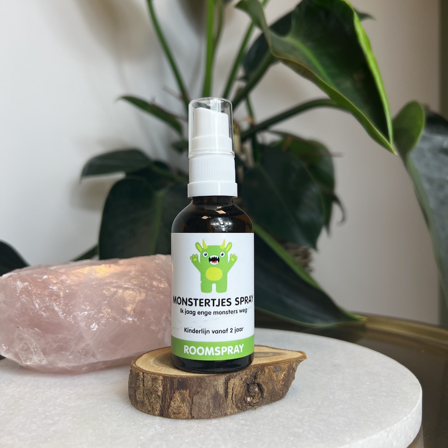 Monstertjes spray, tegen angsten in de nacht. Deze monsterlijke spray is al jaren een geliefde spray voor kinderen die last hebben van angsten in de nacht. Ze durven veelal niet te gaan slapen, omdat ze in de schaduwen enge monsters zien en horen. De geurcombinatie van Mandarijn en Ylang Ylang helpt om angst te verzachten en brengt een positief gevoel. Sinaasappel draagt bij aan extra ontspanning en een fijne sfeer voor het slapengaan.