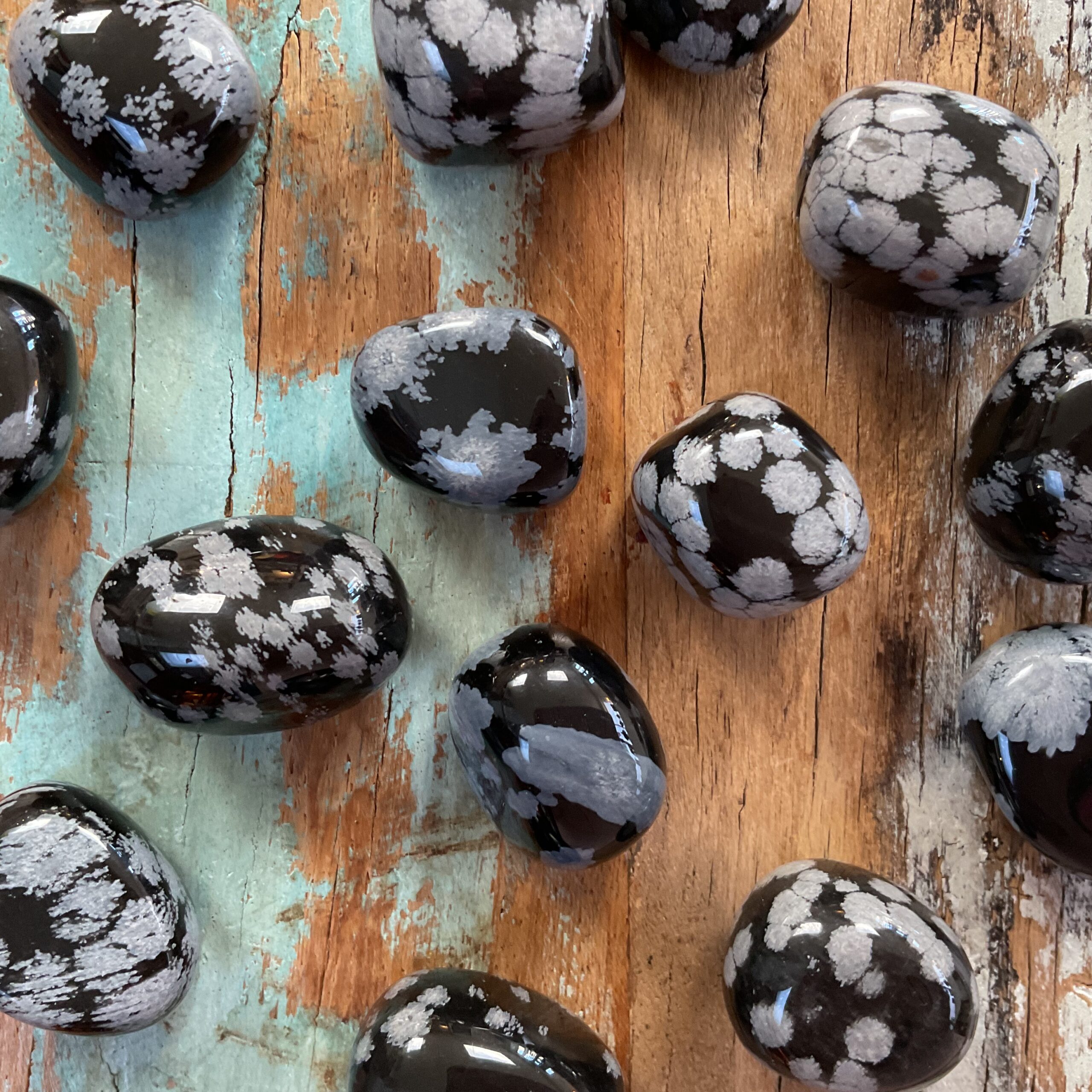 Sneeuwvlok Obsidiaan is een fijne zacht werkende Obsidiaan en werkt als een spiegel voor je ziel en bevordert innerlijke rust, vrede en balans. Geeft inzicht en helpt met het ontdekken wie je werkelijk bent. Het vermindert angsten en ruimt oude pijnen op en ondersteunt bij trauma verwerking. Het doorbreekt gedrags- en denkpatronen ten gevolge van oude pijnen en trauma’s. Het brengt de waarheid, de kern of oorzaak van dingen (of ziekte) en verdrongen en weggestopte ervaringen en emoties naar boven. Deze steen kan zeer krachtig werken en door heftige emoties die naar boven kunnen komen komen en het feit dat sommige (zelf)inzichten ook erg confronterend kunnen zijn, kunnen gevoelige personen deze steen beter onder begeleiding van een therapeut gebruiken. Het zorgt op zachte wijze voor balans tussen lichaam en geest. Het opent blokkades en laat de energie weer stromen. Als je worstelt met een moeilijke tijd in je leven, kan Sneeuwvlok Obsidiaan je helpen dat ‘licht in de duisternis’ te vinden. Het kan je de vastberadenheid geven om je weg te vinden. Handig om jezelf in staat te stellen om ondersteuning op te merken die u misschien hebt gemist of ideeën of inzichten die je kunnen helpen. Zie het als een zaklamp waarmee je in het donker rond kunt kijken en de bronnen kunt vinden die je voorheen niet kende. Sneeuwvlok Obsidiaan helpt je om af te stemmen op spirituele begeleiding en is nuttig voor personen die willen communiceren met hun gidsen en dierengeesten. Ga met deze steen mediteren en sta jezelf toe om te ontspannen en laat je steunen. Tevens kan deze steen ook helpen bij het herinneren van vorige levens en het terugkrijgen van herinneringen van je huidige leven.