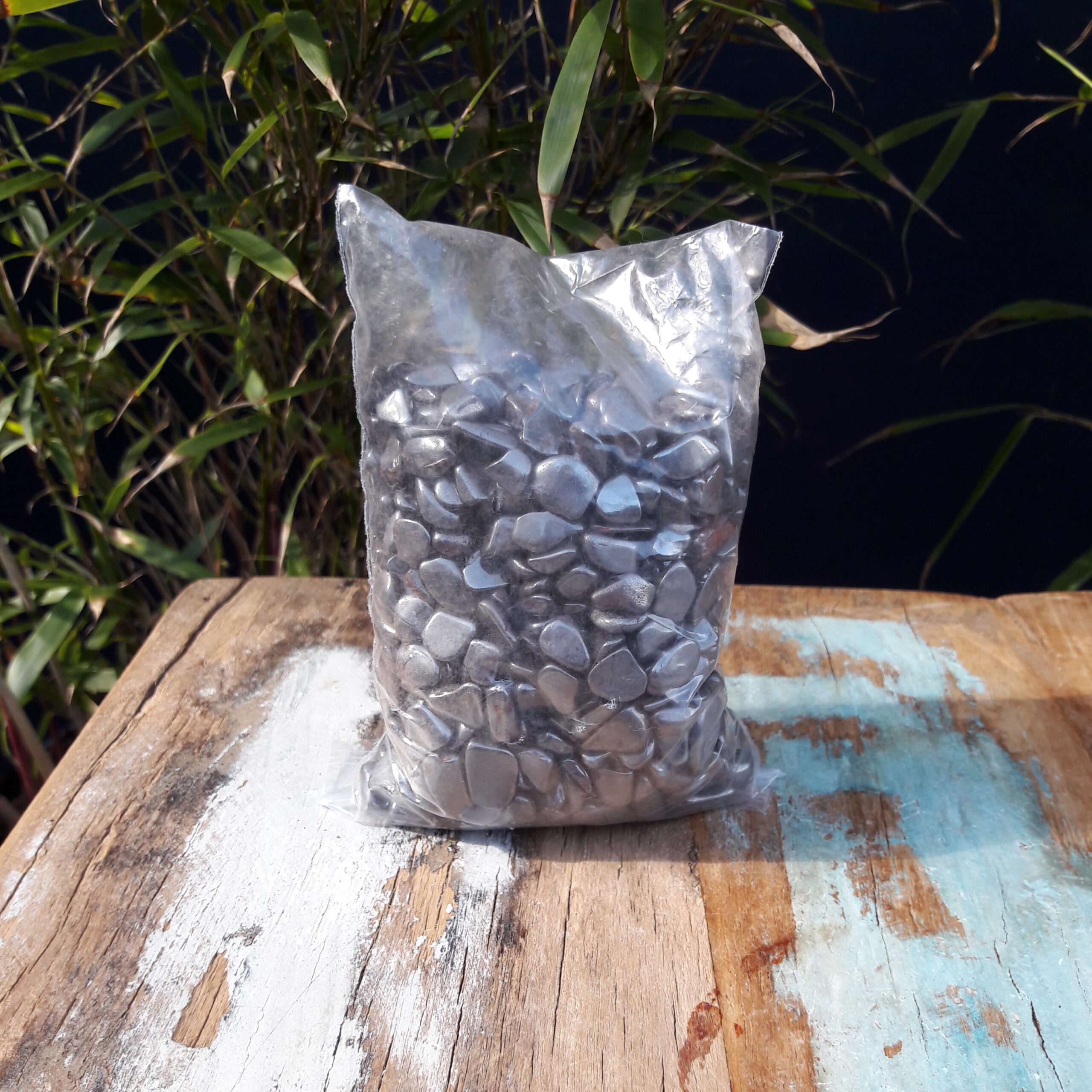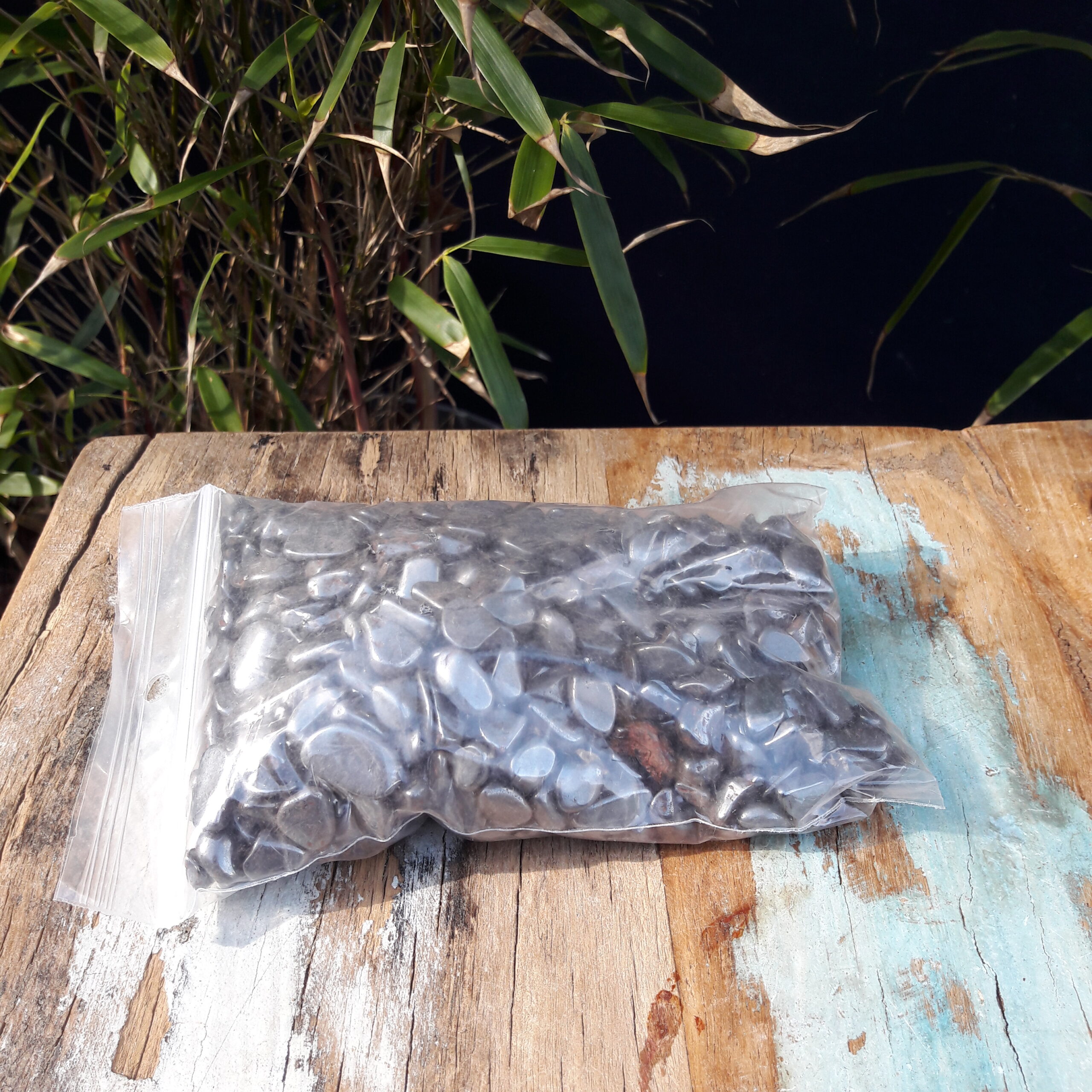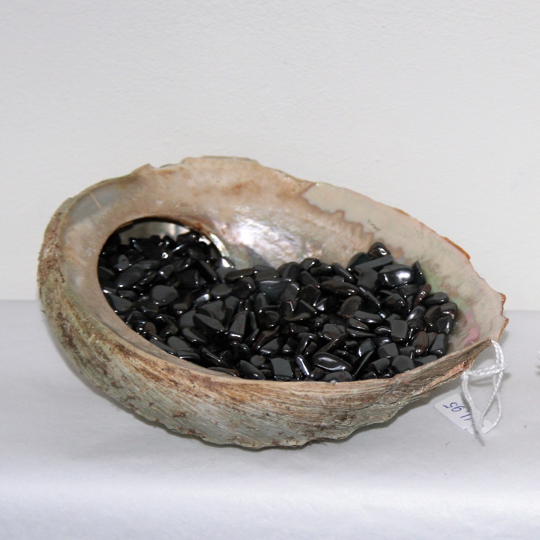 Zakje hematiet voor in Abalone schelp